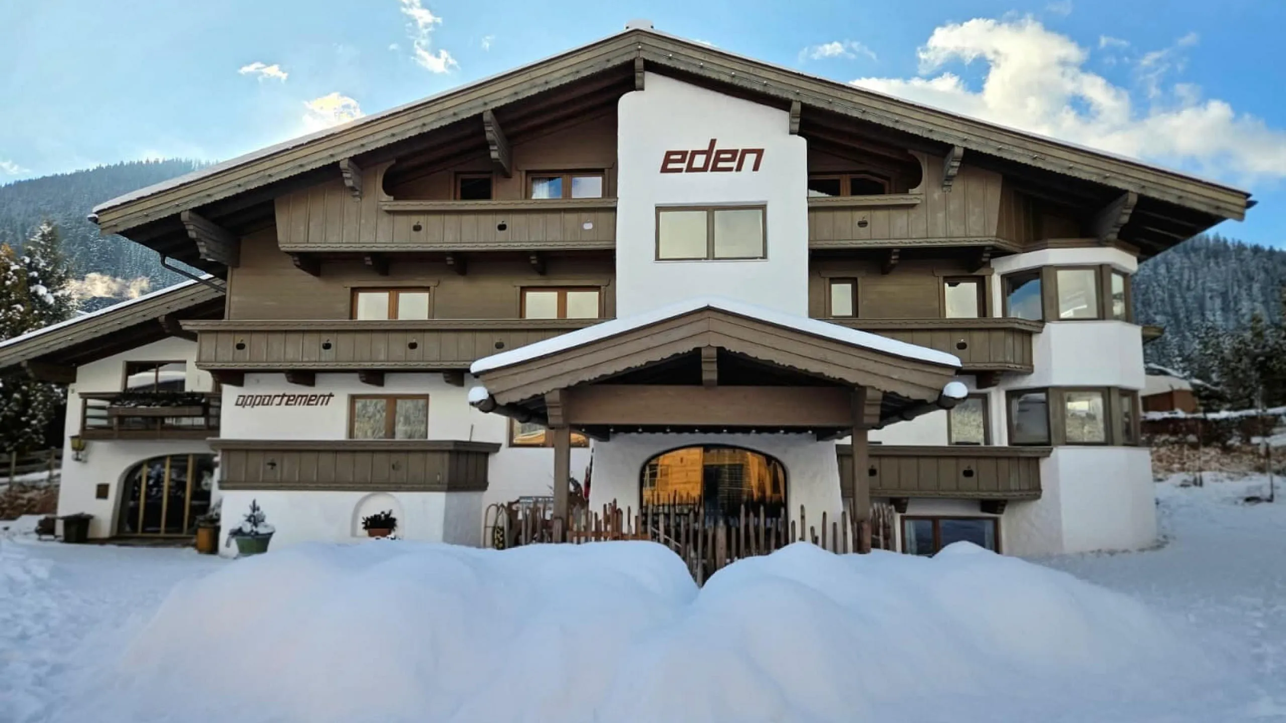 Entdecken Sie unsere traditionellen, familiengeführten Eden Boutique Appartements im gemütlichen Tiroler Landhausstil, in bester Lage im Bergdoktordorf Going am Wilden Kaiser. Es erwartet Sie ein atemberaubender Rundblick über die verschneiten Gipfel der Kitzbüheler Alpen, den Astberg und den Hartkaiser bis hin zum majestätischen Bergmassiv des Wilden Kaisers.